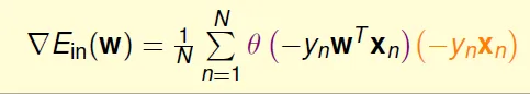 - 用 (xn, yn) 更新的大小: $θ(-y_nw^Tx_n)$