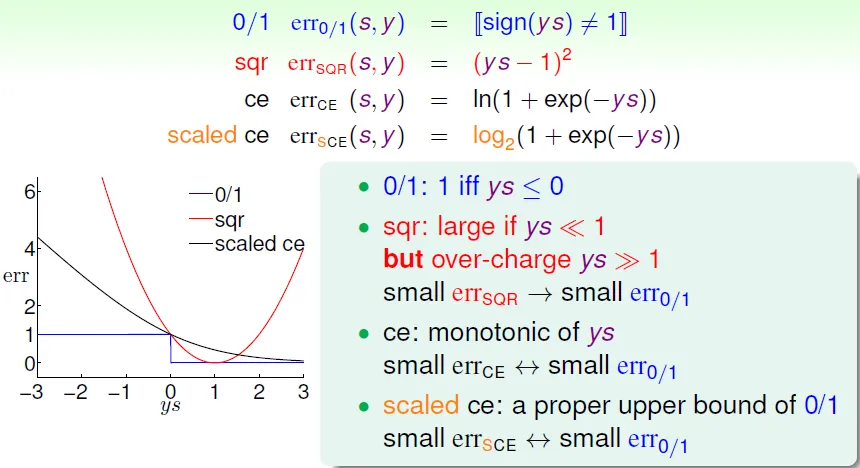 - 誤差大小(看面積): Square Error > 0/1 Error