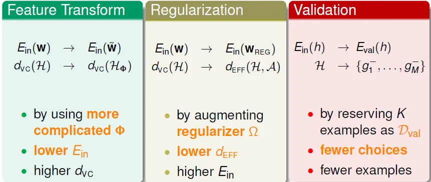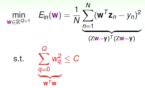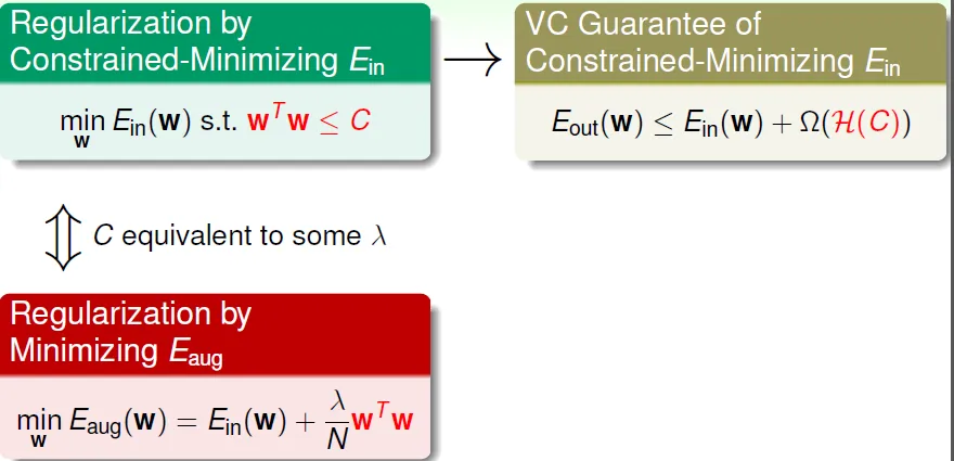 Regularization: 設條件(constraint) 降低 hypothesis set 的 complexity