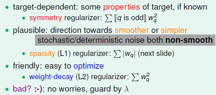 - 預期比較平滑、簡單的hypothesis,因為noise是較不平滑的