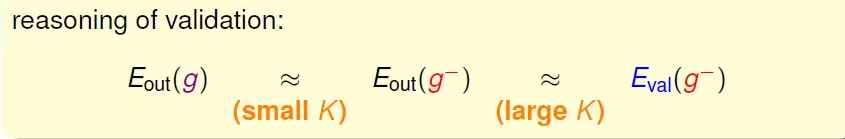 在許多切割(fold)之中,找$E_{val}$最小的hypothesis,並用這個hypothesis和全部的data算出g