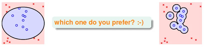 因為愈簡單的H 愈難分資料 → 可以分開資料時,有顯著性(若是用複雜模型,分開是很容易的)