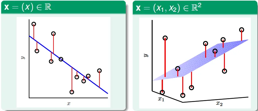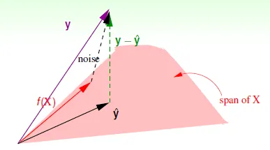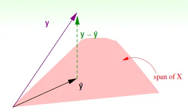 - 最小誤差會出現在y - $\hat{y}$ 與 span of X 垂直時