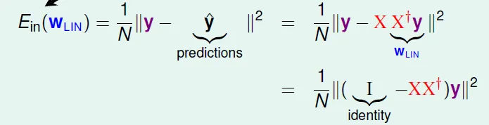 預測值 $\hat{y} = Xw = XX^{-1}y = Hy$