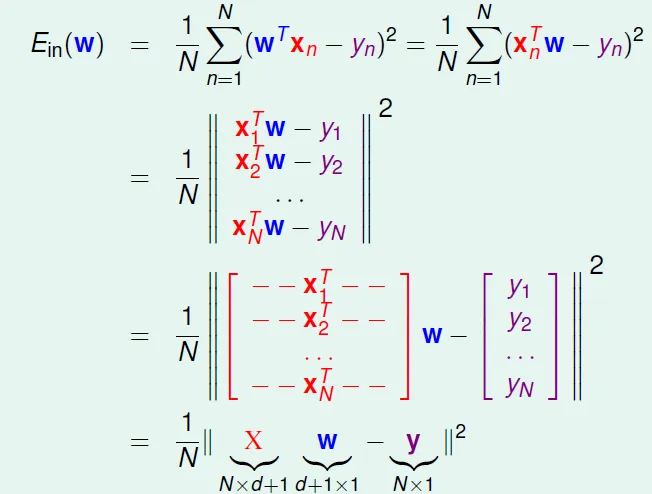 轉換成矩陣形式(最後一行的X, y, w都是矩陣)