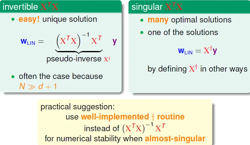 - Yes → good Ein and Eout(finite $d_vc$), pseudo-inverse