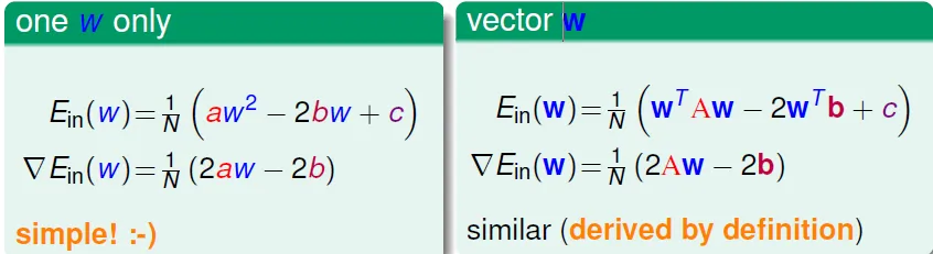 - 因為 A 為 $X^tX$ 的形式,必為symmetric matrix,可直接做微分