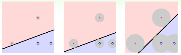 → 可以容忍的誤差愈大愈好(最近的點與分隔線的距離愈遠愈好)