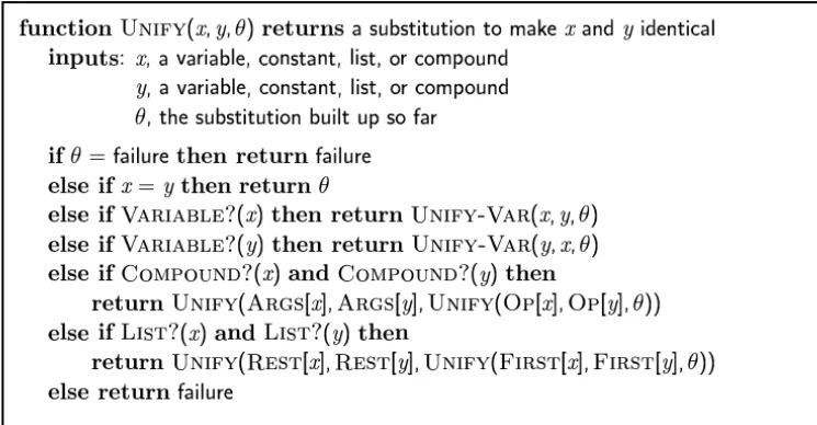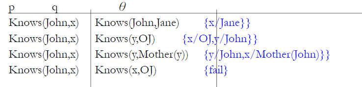 - We can get the inference immediately if we can find a substitution θ such that King(x) and Greedy(x) match King(John) and Greedy(y)