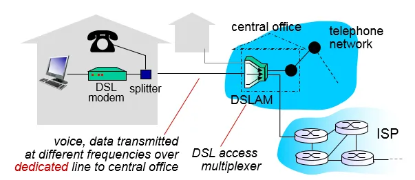 DSL透過電話線的附加頻段在話音訊帶上傳送大量資料