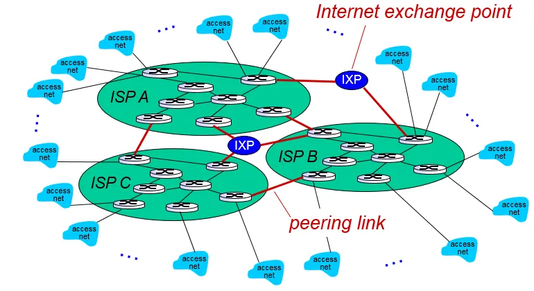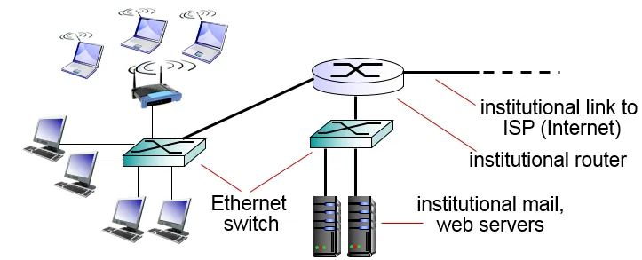 - Packet switches: forward packets(chunks of data) by routers and switches