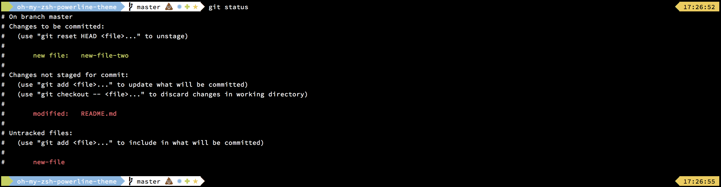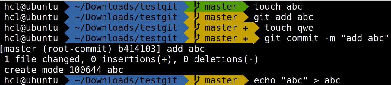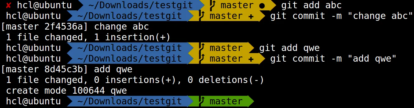 - Dirty working directory (±, color change)