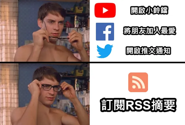 - 愈重要、含金量愈高的資訊來源愈需要用RSS訂閱的方法,其他娛樂性質的網站如社群網站或ptt就不太需要