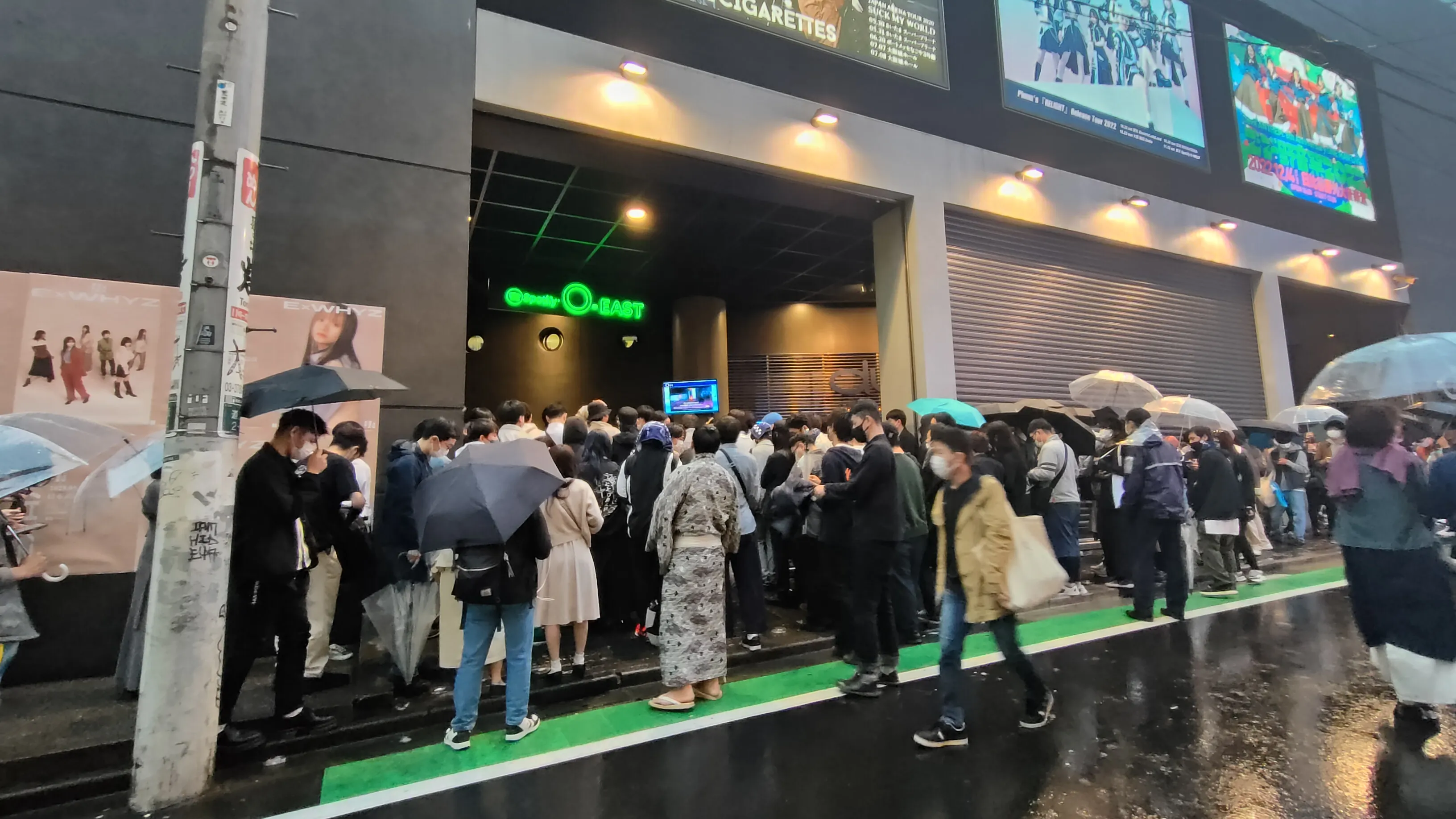 場地在 Spotify O-East,澀谷站走十分鐘到達。在一個斜坡上,當天又在下雨,所以人擠在室內。