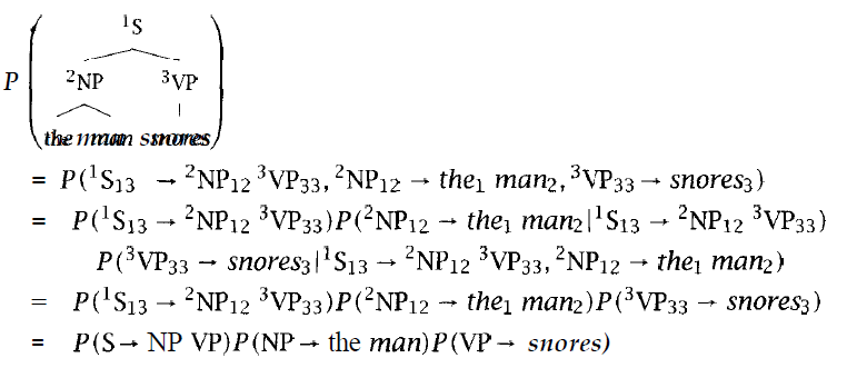 - probability of a subtree does not depend on words not dominated by the subtree(subtree出現的機率和上下文無關)