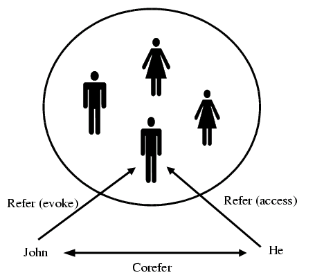 - reference backs to entities that have been introduced by previous nounphrases in a discourse